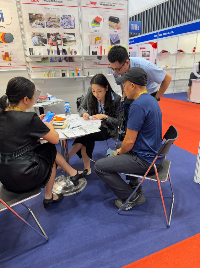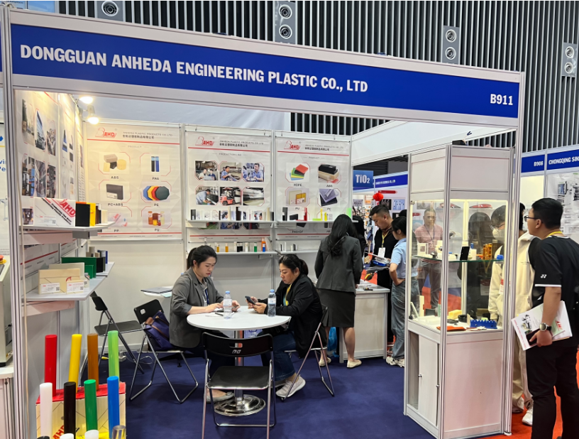 展會(huì)期間,安和達(dá)展位人流如織,來(lái)自東南亞等地的專業(yè)買家、行業(yè)專家紛紛駐足交流。公司團(tuán)隊(duì)現(xiàn)場(chǎng)通過(guò)實(shí)物展示、技術(shù)講解與應(yīng)用案例分享,生動(dòng)呈現(xiàn)了旗下塑膠板材棒材,在耐用性、抗腐蝕性、輕量化及環(huán)保性能等方面的卓越表現(xiàn),充分滿足食品包裝、汽車制造、電子電器、醫(yī)療設(shè)備等多領(lǐng)域?qū)Ω呖煽啃圆牧系膰?yán)苛需求,贏得客戶高度認(rèn)可。產(chǎn)品包括:PP、PE、POM、PC、ABS、PU、PA6、PEI、PPS等材料。